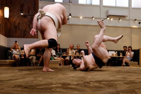 Turistët në Tokio argëtohen duke u ndeshur me… mundës sumo