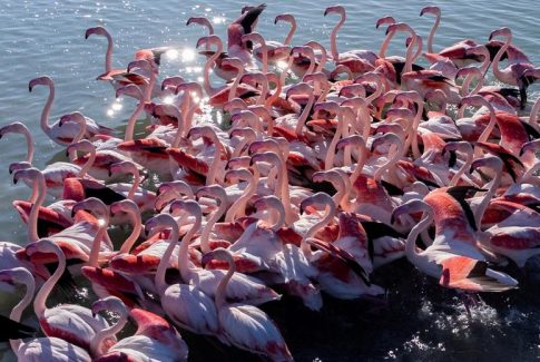 Mes fotove të ditës, dhe flamingot në Zonën e Mbrojtur Vjosë-Nartë