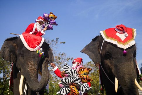 Në Tajlandë, Babagjyshi i shpërndan dhuratat me… elefantë