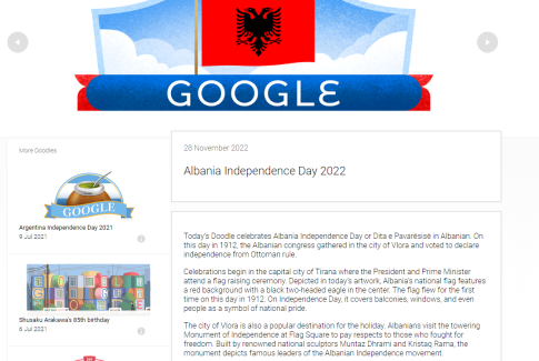 ‘Google’ vishet kuqezi për 110-vjetorin e shtetit shqiptar