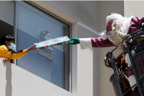 Babagjyshi u shpërndan dhurata fëmijëve në Peru… nëpërmjet një zjarrfikëseje