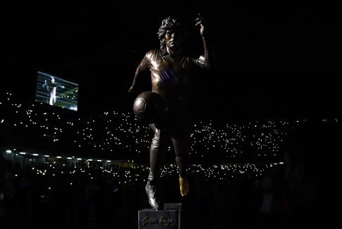 Në stadiumin që tashmë mban emrin e tij, të ndriçuar vetëm nga dritat e celularëve të tifozëve, është zbuluar vepra homazh për Diego Armando Maradonën. Një atmosferë vërtet drithëruese është krijuar në stadium para…