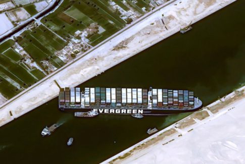 Bllokimi i anijes “Evergreen”, foto nga ajri