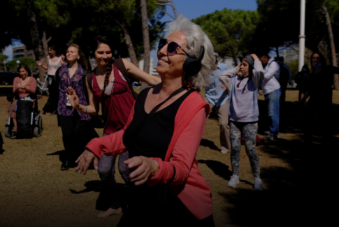 Një disko në natyrë, duke kërcyer me kufje në vesh