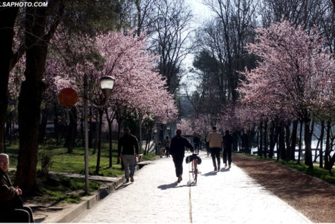 Liqeni i Tiranës është mbushur me pemë të lulëzuara, si një shenjë e ardhjes së pranverës, ndërkohë që njerëzit kanë dalë të shijojnë diellin.