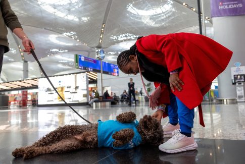 Qentë e trajnuar qetësojnë pasagjerët në aeroportin e Stambollit