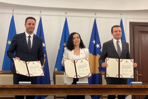 Osmani, Kurti dhe Konjufca nënshkruajnë aplikimin për anëtarësimin e Kosovës në BE