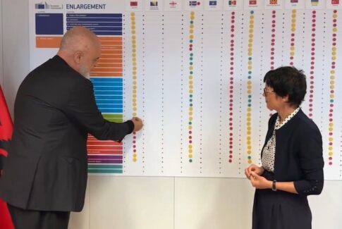 Nga Gazeta 'Si'- Komisionerja për zgjerimin, Marta Kos dhe Kryeministri Rama janë ndalur gjatë vizitës në Bruksel dhe në një tabelë ku shfaqej procesi i avancimit drejt integrimit europian të të gjitha vendeve që…