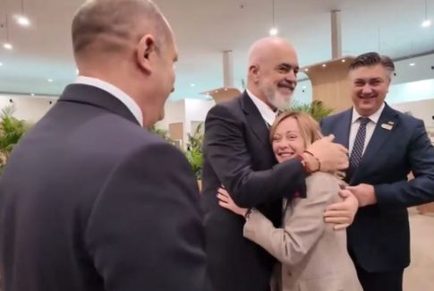 Video / Meloni takon papritur Ramën në Baku, kryeministri i ulet në gjunjë dhe e përqafon