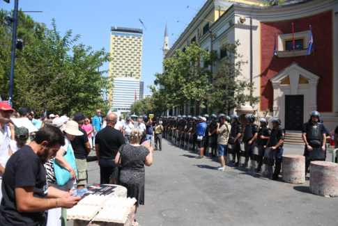 Protesta para bashkisë mbyllet për 30 minuta/ Më pak policë e tensione, nuk mungoi hedhja e vezëve drejt derës kryesore