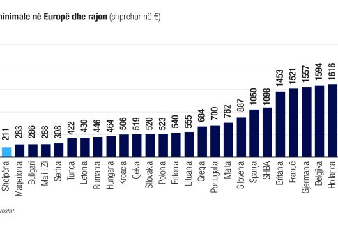 Shqipëria vendi me pagën minimale më të ulët në Europë