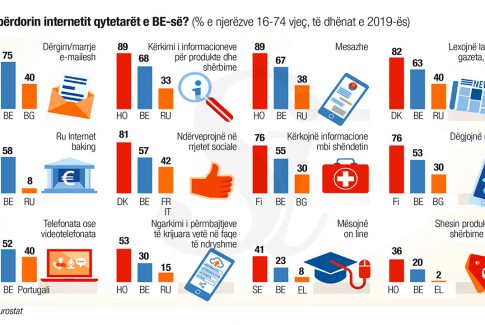 Në 2019-ën, sipas Eurostat 87% e njerëzve mes mosshës 16-74 vjeç në BE raportuan se e kanë përdorur internetin gjatë tre muajve të fundit. Kurse në Shqipëri. Sipas INSTAT, 68.6% njerëzit e kësaj moshe…
