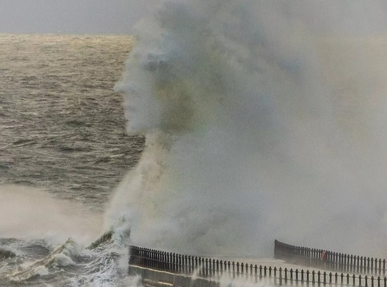 Një fotograf mbeti i mahnitur kur kapi formën e një fytyre në një dallgë që po përplasej në një far.