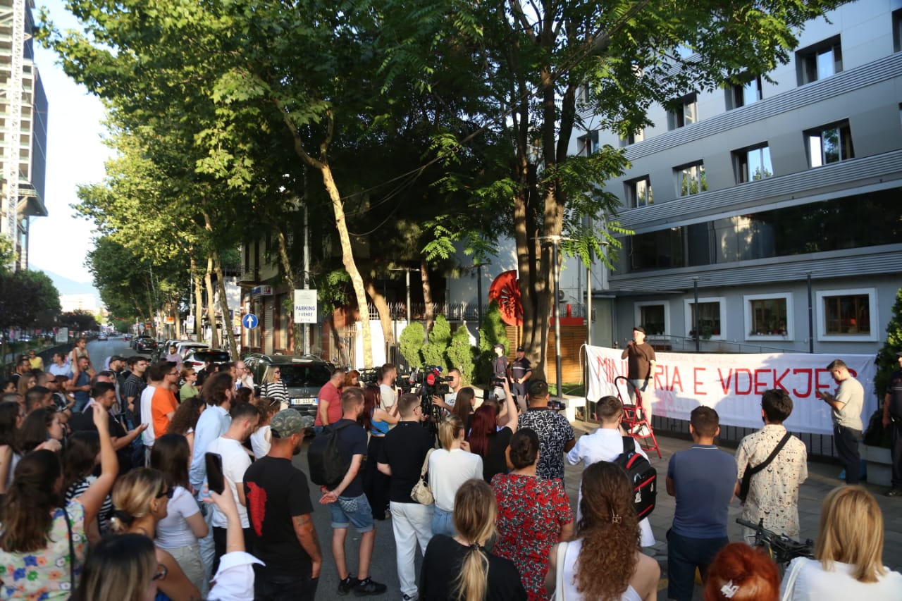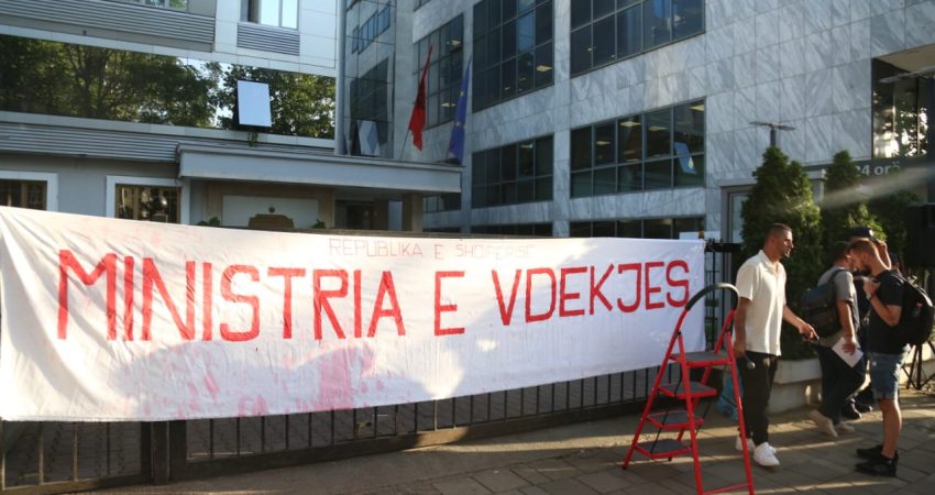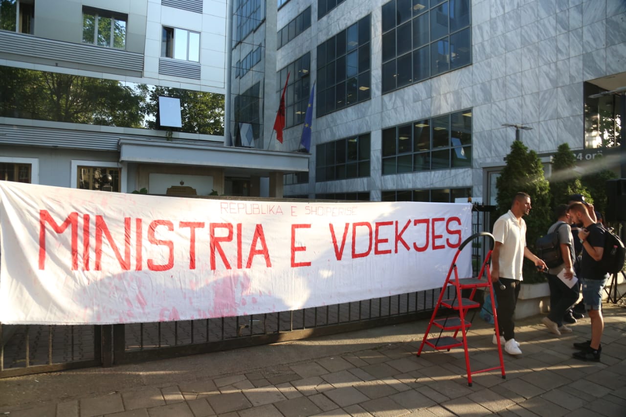 Ashtu si në protestat e shkuara, qytetarët rrethuan ministrinë e Shëndetësisë me pankartën “Ministria e Vdekjes”.