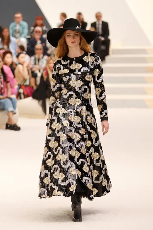Chanel zgjodhi një interpretim ndryshe për sfilatën e tyre vjeshtë-dimër. Veshjet ishin një kthim në kohë të fustaneve të gjatë ose fundeve të plotë. /Reuters/