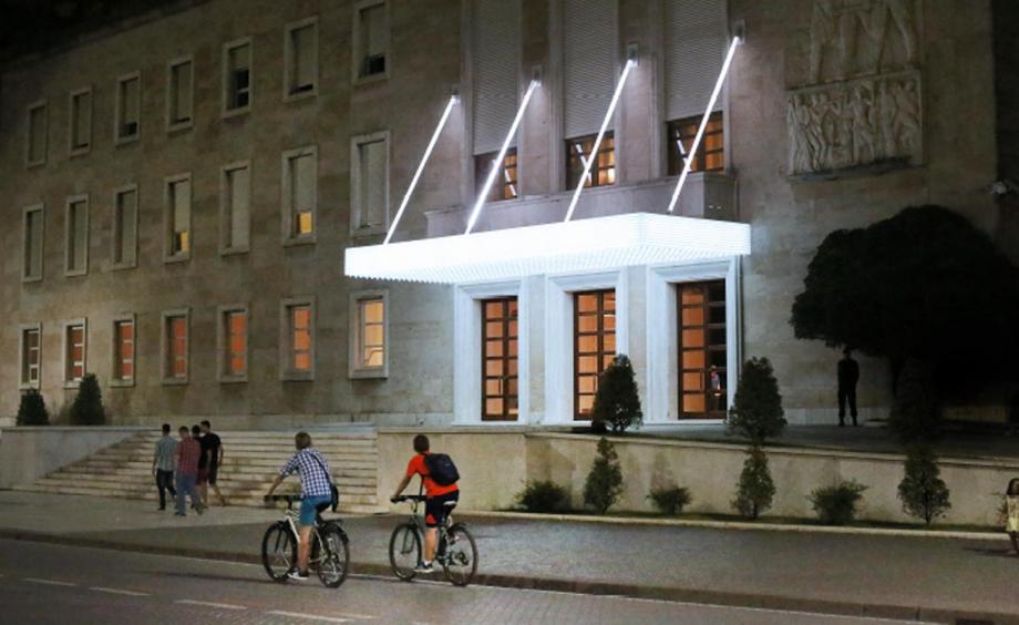 I njëjti fat iu rezervua edhe Tendës apo “Markizës”, në hyrje të kryeministrisë, vepër e një tjetër artisti bashkëkohor me famë, francezit Philipe Parreno. Tenda e bardhë me drita neon, që i jepte mjedisit dhe godinës prekje glamour, do të shihej nga shumë si e pavend, ato ditë të para kur u instalua , duke e bërë një godinë zyrtare të ngjante më shumë si një club apo kazino dhe duke ia zbehur ‘seriozitetin’ ndërtesës nga ky qeveriset populli. “Markiza” është një vepër që Parreno e ka rikrijuar për institucione si Muzeu Guggenheim në Nju Jork, Pallatin e Tokios në Paris dhe për Pallatin “Grassi” në Venecia. Të gjithë këto institucione të rëndësishme të artit botëror. E megjithatë jo për në godinë qeveritare. Me vendosjen e kësaj Tende në kryeministri, synohej një pikë takimi mes kulturës dhe politikës, dijes dhe mendimit kritik, mjedisit të brendshëm dhe atij të jashtëm.