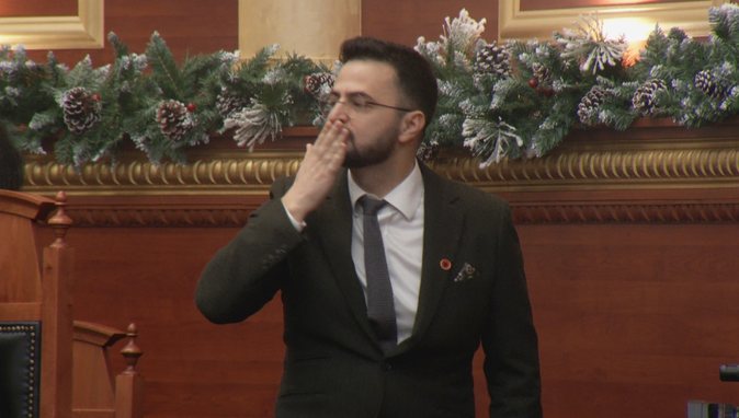 Për opozitën, e cila sot shkaktoi kaos në Kuvend që Shabani të mos kryente betimin, ai pati vetëm një përgjigje: një puthje me dorë në distancë.