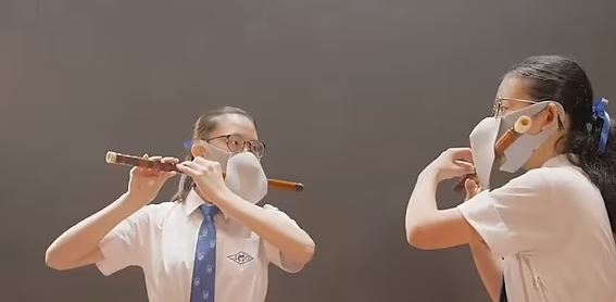 Një video në Hong Kong që tregon nxënësit që kanë vendosur dy maska teksa performojnë me flaut, ka shkaktuar tallje në mediat sociale.