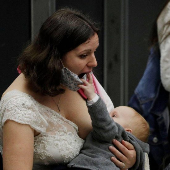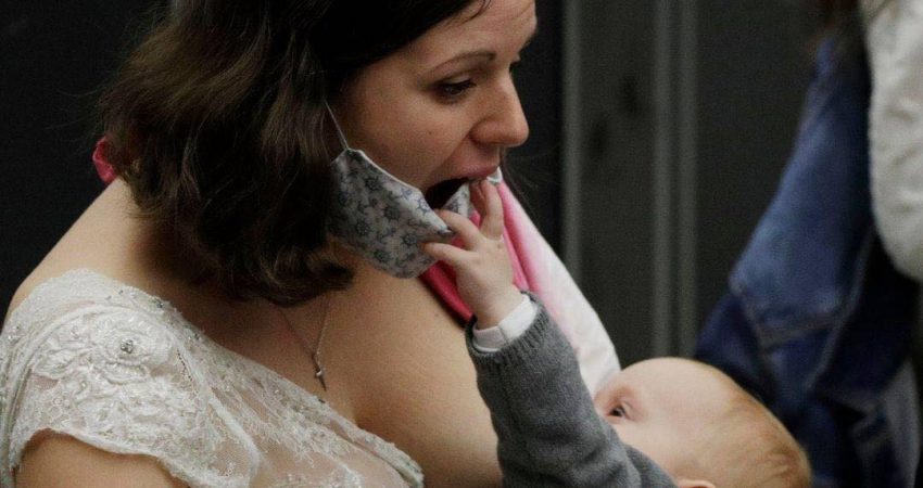 Në foto është zonja Valentina Frey duke i dhënë gji të voglës së saj, Charlotte Katharina.