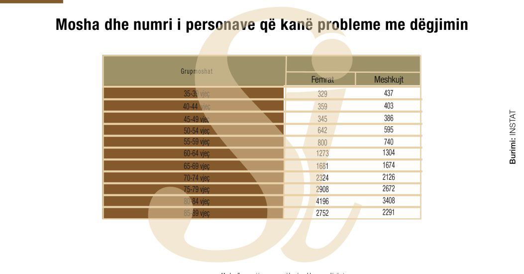 Të dhënat e censit 2023 treguan se, problemet me dëgjimin nisin mbi moshën 35 vjeç tek meshkujt dhe mbi 50 vjeç dyfishohen rastet tek femrat.