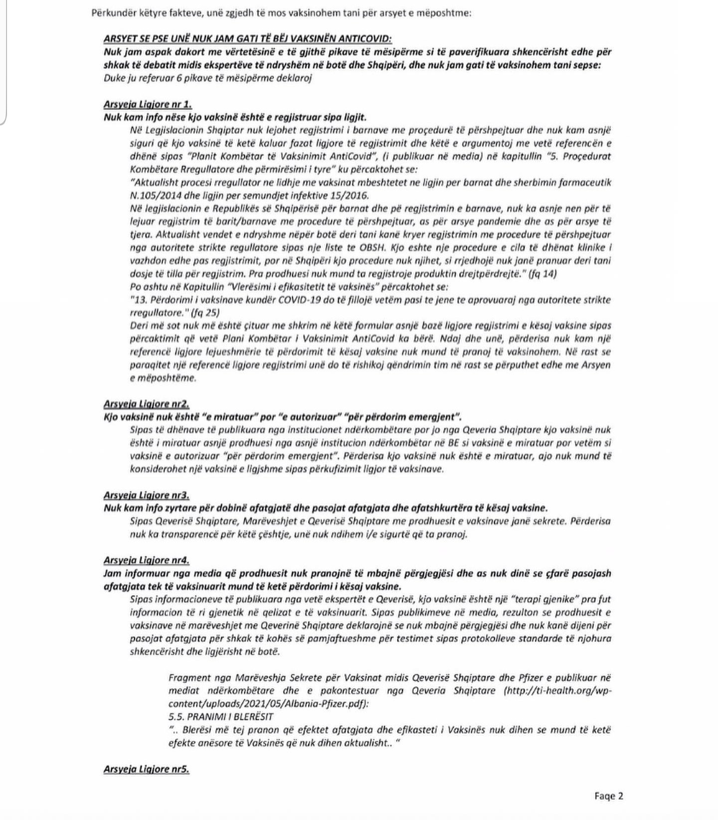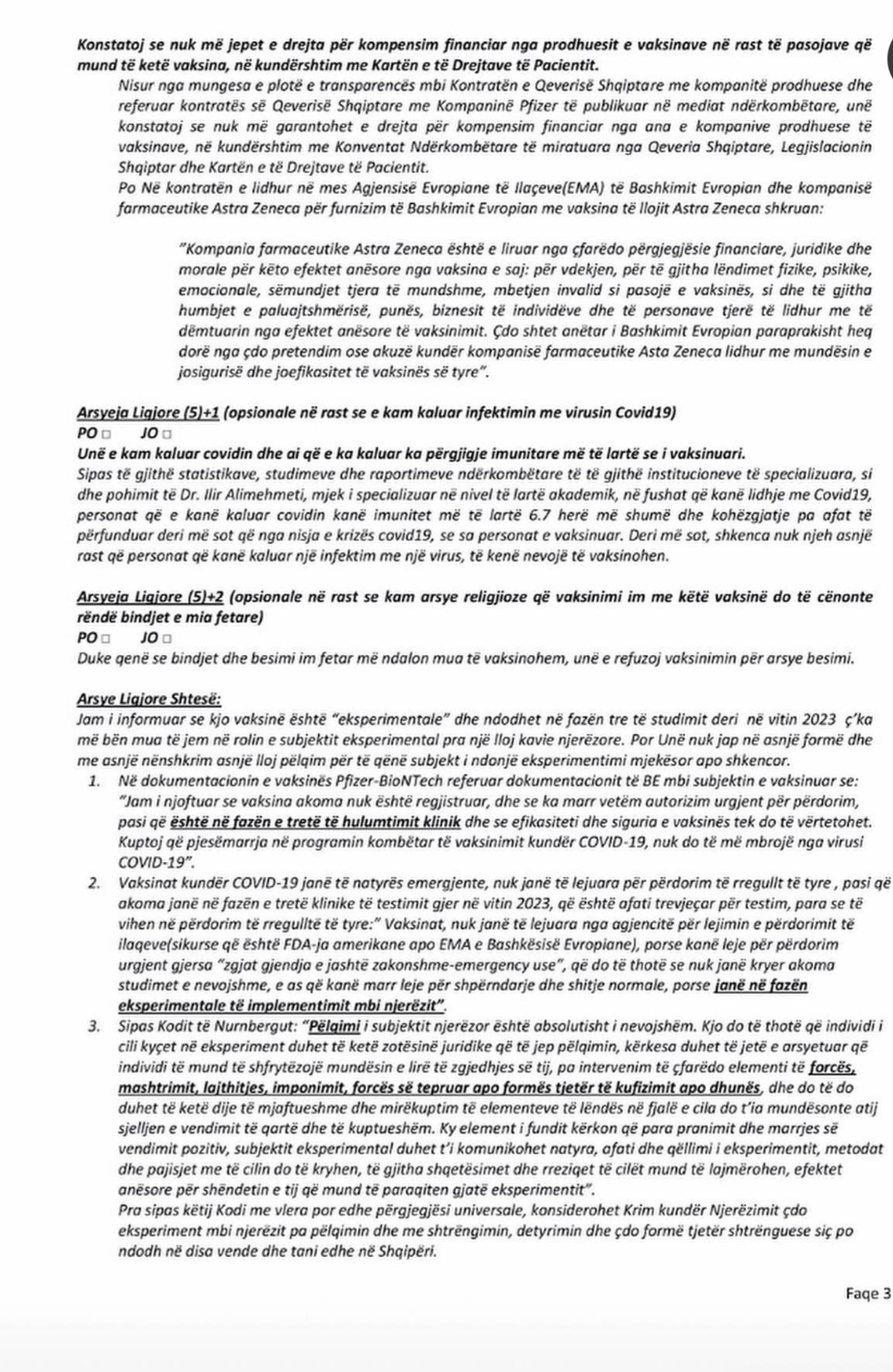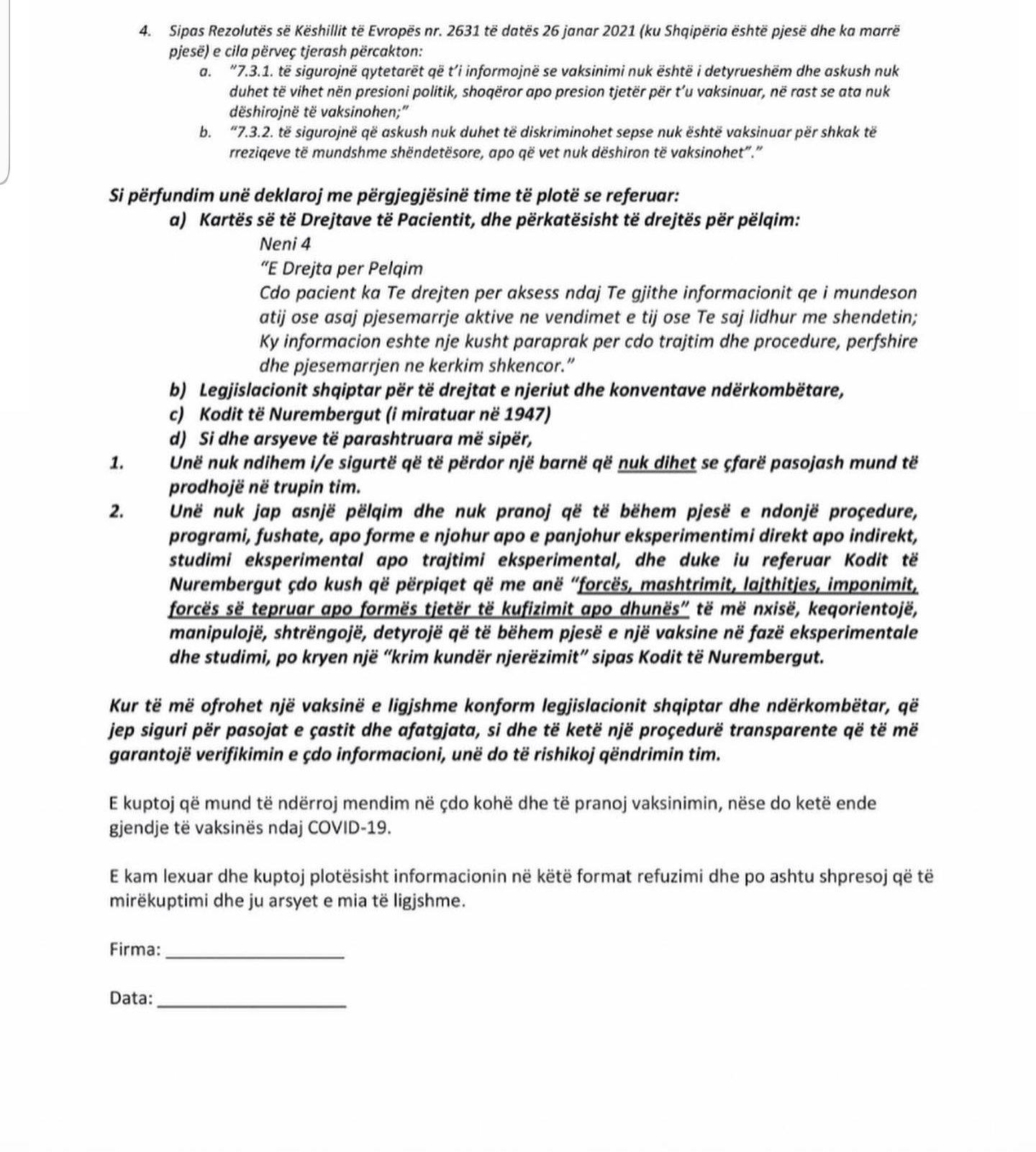 Ndërkaq në fletën e dytë të deklaratës thuhet se ajo është e ndërtuar nga avokatë që janë specializuar mbi legjislacionin të të drejtave të njeriut dhe atë shëndetësor.!
