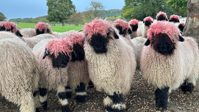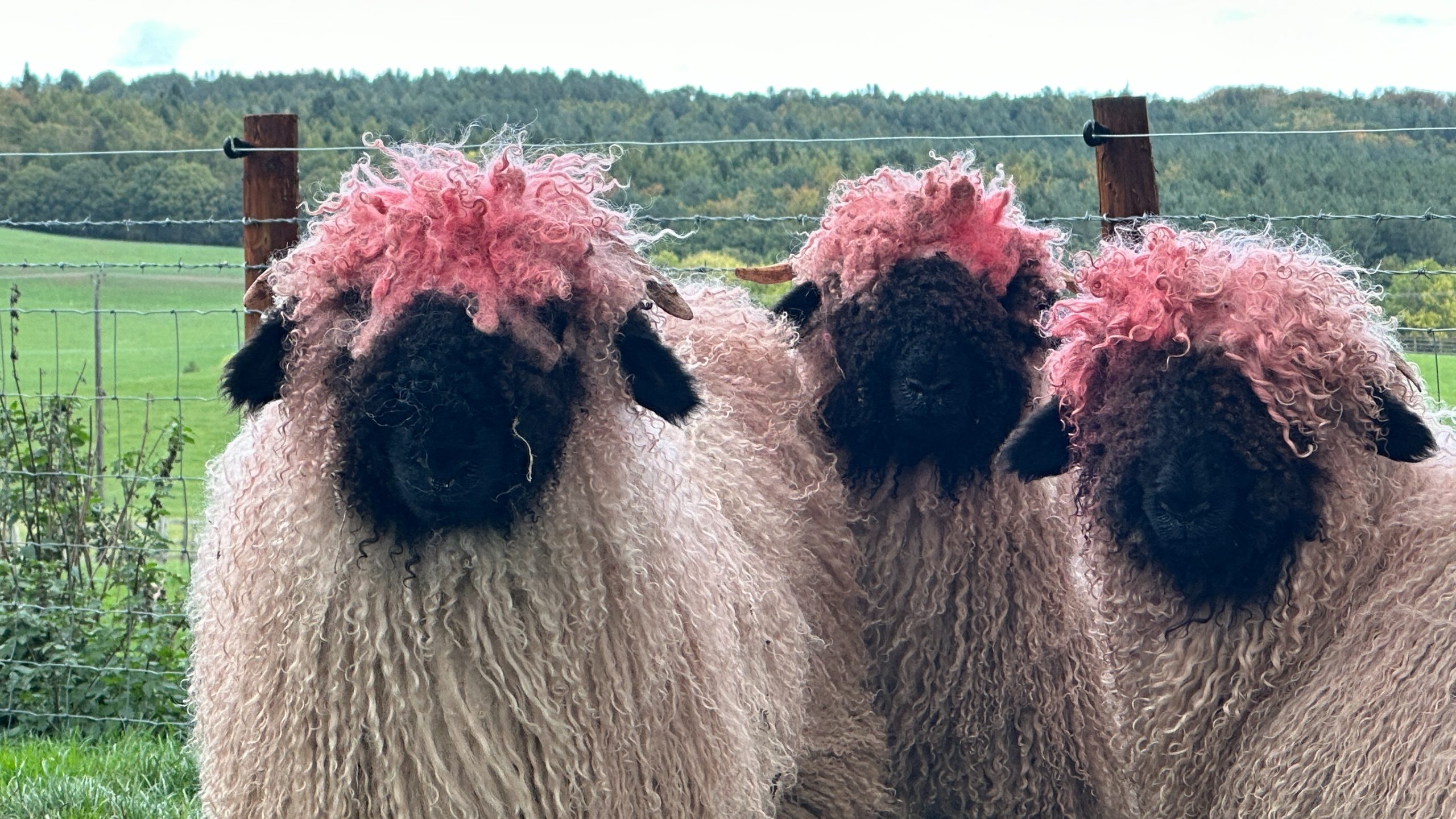 Një tufë delesh kanë marrë një ngjyrë të bukur rozë pasi një ushqyes arriti të ngjyroste leshin e tyre.