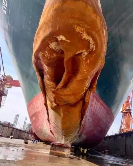 Ndër të parët që shfaqi fotot, ishte Sal Mercogliano, një profesor i historisë detare në Universitetin Campbell. Hunda e “Ever Given” është shumë e dëmtuar, për ta riparuar do të kërkojë të zëvendësohet.