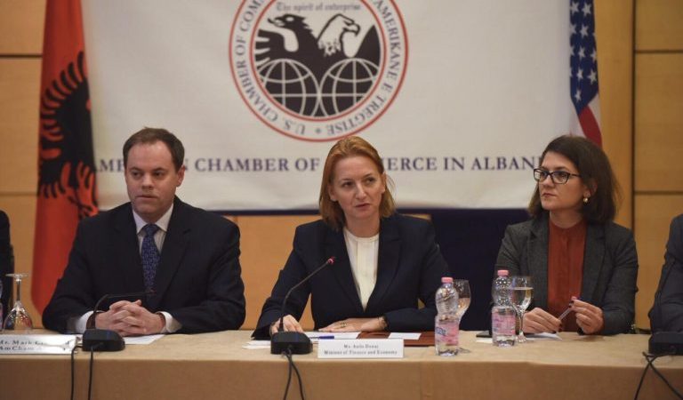 Ministrja e Ekonomisë dhe Financave Anila Denaj në një takim me Dhomën Amerikane të Tregtisë, ka garantuar biznesin se një nga përpjekjet e rëndësishme në drejtim të trajtimit të barabartë të sipërmarrësve dhe transparencës do të jetë “shlyerja detyrime të prapambetura”.
