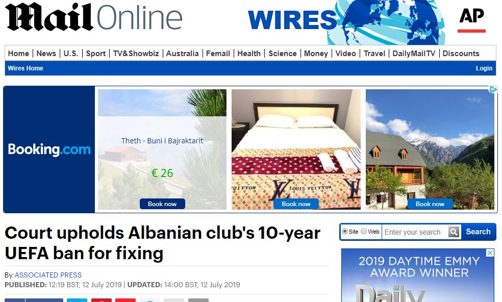 Gazeta amerikane “The Washington Post” shkruan se “UEFA ngriti shqetësime në lidhje me bastet që viheshin për humbjen apo fitoren e Skënderbeut dhe ndikimin e madh si të përfshirë në këtë aferë ish-ministrin e Financave, Ridvan Bode, ish-presidentin Agim Zeqo dhe presidentin aktual të klubit Ardjan Takaj.”. Të njëjtën gjë ka shkruar edhe agjencia botërore e lajmeve, “Associated Press”, ndërsa sipas Daily Mail dënimi për klubin korçar është marrë pas një hetimi që është shtrirë gjatë në kohë.