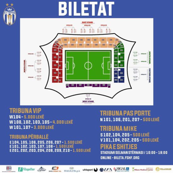Tirana, si klub organizator, ka publikuar edhe çmimet e biletave, që dalin në treg që sot. Bie në sy fakti se një biletë për këtë ndeshje shkon deri në 5 mijë lekë, shumë më shtrenjtë se në një ndeshje të zakonshme.