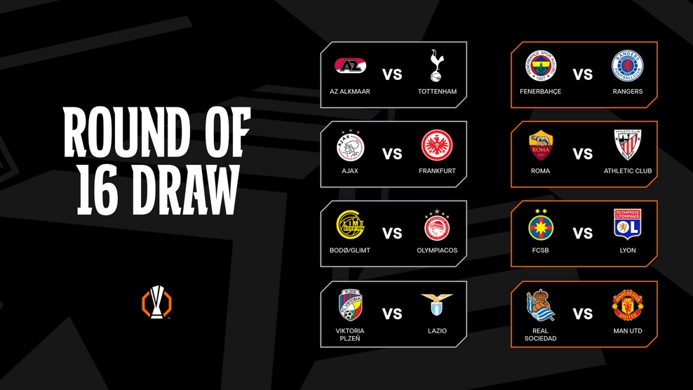 Ajax-Eintracht Frankfurt dhe Roma-Athletic Bilbao ishin dy ciftet që spikatën në UEFA Europa League. Holandezët (fitues në UCL) dhe gjermanët (dy herë fitues në Europa League) do të kërkojnë kualifikimin për në ¼ finale ku mund të përballen me Tottenham në një tjetër sfidë delikate në rrugën drejt Bilbaos. Atje ku vendasit do të tentojnë një mrekulli të vërtetë për të mëbrritur dhe për këtë kanë nevojë për Nico Williams në formën e Euro 2024. Fillimisht Roma dhe pastaj fituesja e Fenerbahce-Rangers për në ½ finalen që mund ti vërë përballë Manchester United dhe njërës mes Sociedad dhe Lyon që deri atje duhet të djersijnë shumë në një fazë delikate të sezonit me një kalendar gjithnjë e më shumë të ngjeshur. Më pak të favorizuar duken skocezët e Rangers (ku luan dhe Nedim Bajrami) për mbërritjen në Bilbao si dhe italianët e Lazio-s që i shpëtuan derbit kryeqytetas në këtë fazë.