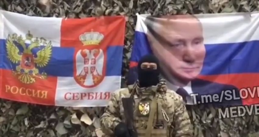 Në një video e cila po qarkullon në rrjetin social “X” shihet një mercenar serb i cili para flamurit të Serbisë dhe Rusisë mban fjalim ku thotë se pas Donbasit, destinacioni tjetër është Kosova.
