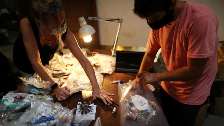 Marcelo Toledo zakonisht krijon skulptura dhe bizhuteri nga metali. Tani artisti argjentinas po punon me një material të ri: maska dhe shiringa të hedhura në plehra gjatë Covid-19 për të krijuar një ekspozitë për ndikimin e dhimbshëm të virusit.