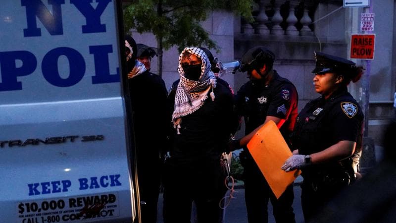 Të paktën 40 deri në 50 studentë, me duart e prangosura u panë duke u futur në furgonë dhe autobusë të Departamentit të Policisë së Nju Jorkut jashtë bibliotekës, ndërsa oficerët të tjerë arrestuan protestuesit e tjerë që refuzuan të largoheshin.