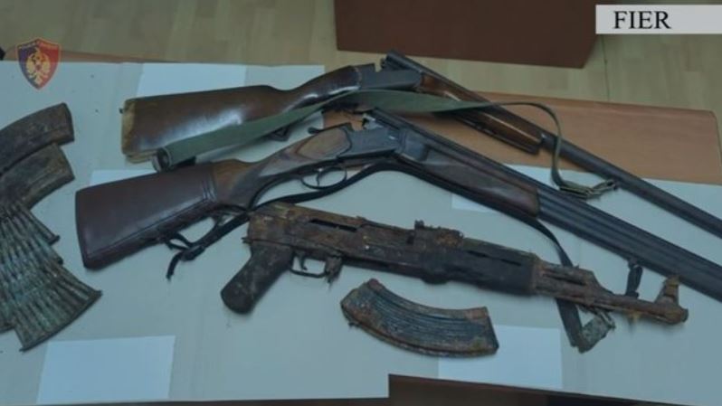 Gjatë kontrollit në banesën e 60-vjeçarit, policia ka gjetur dhe sekuestruar një arsenal armësh (1 armë zjarri automatik, 1 armë zjarri pushkë, 2 armë gjahu), 12 krehra dhe municion luftarak.