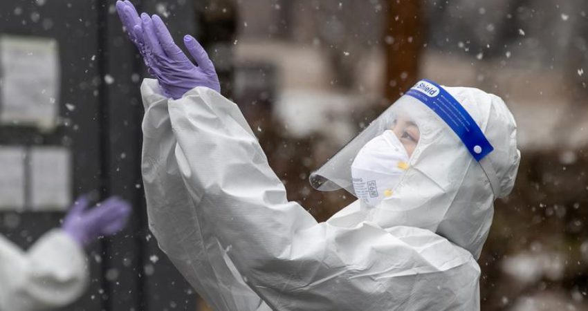 Një punonjëse e shëndetit në Kore ka ‘harruar’ për pak gjithë lodhjen për shkak të Covid-19 dhe thjesht ka dalë të shijoje dëborën jashtë.