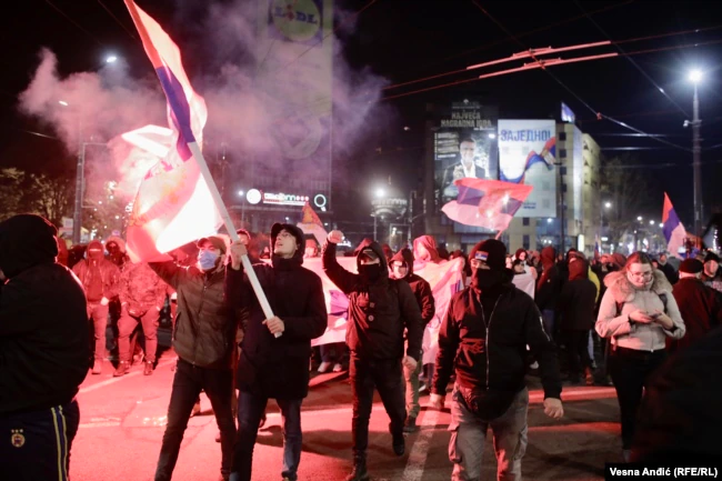 Qindra njerëz u mblodhën të hënën(12 dhjetor) në Beograd, për të protestuar “si shenjë mbështetjeje për serbët” në Kosovë.
