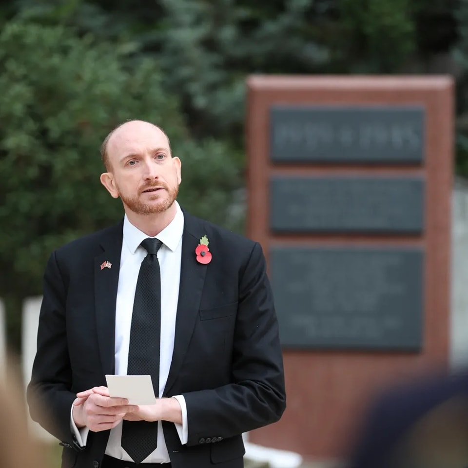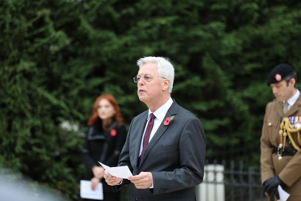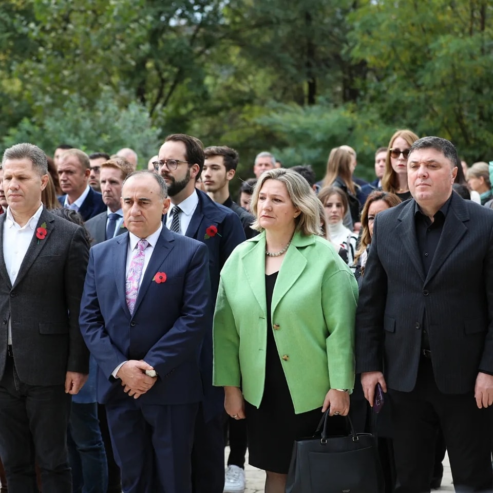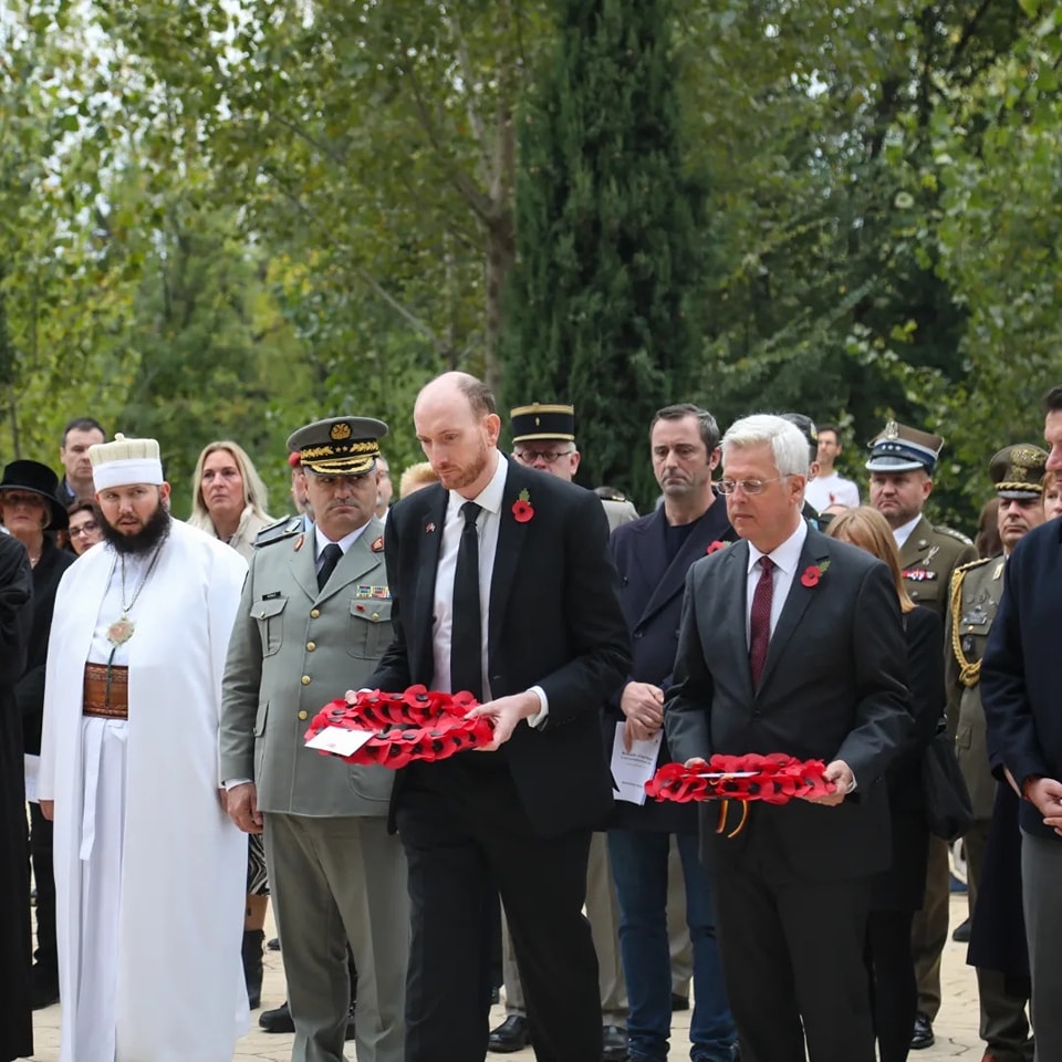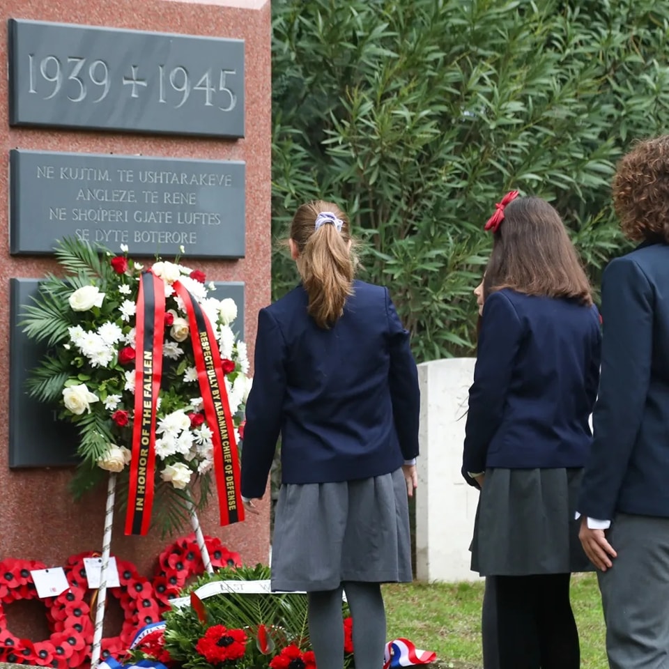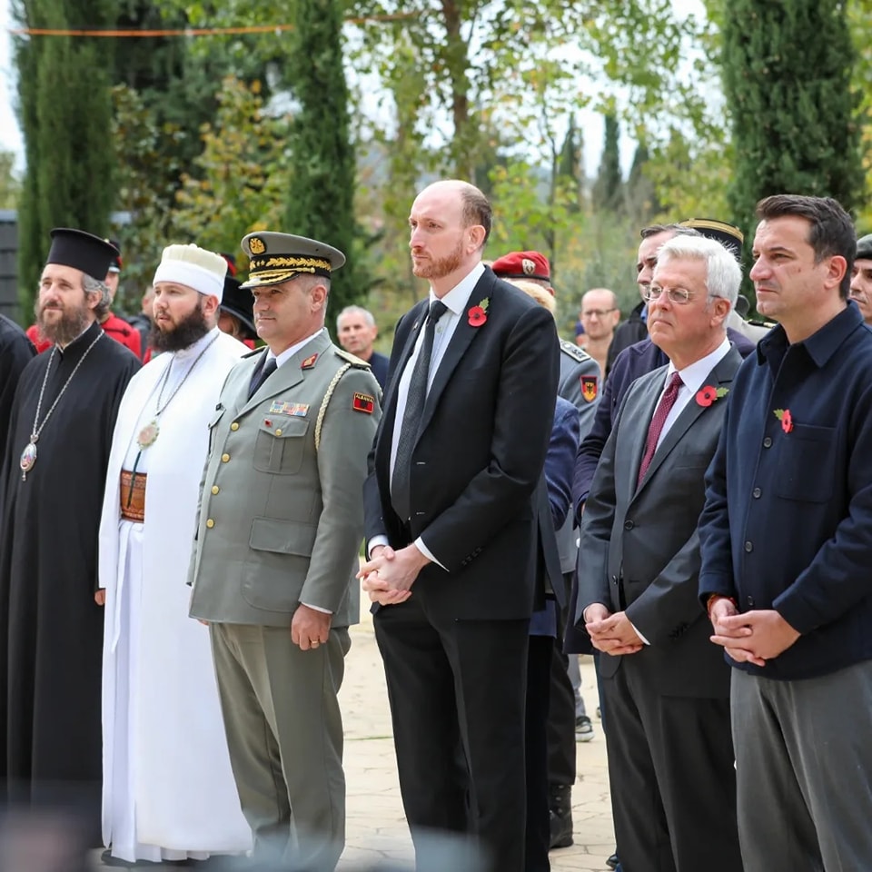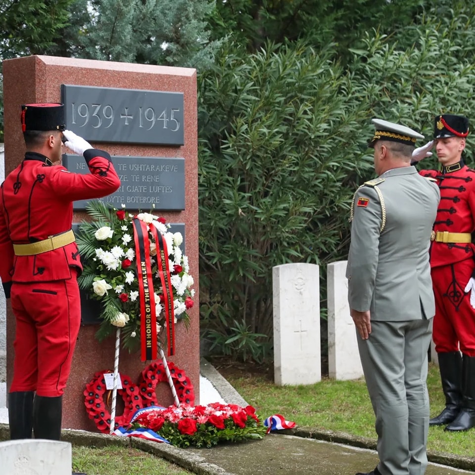Ambasadori britanik, Alastair King-Smith dhe Ambasadori gjerman Karl Bergner vendosën kurora lulëkuqesh në Memorialin e të Rënëve të Komonuellthit, në Tiranë në Ditën e Kujtesës për të nderuar kontributin e të gjithë atyre që humbën jetën në luftra botërore dhe konflikte të tjerë.