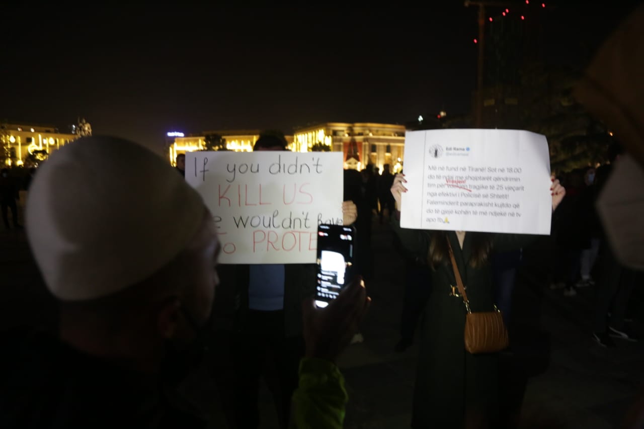 Protesta zgjati më shumë se dy orë pasi grumbuj të rinjsh herë janë larguar dhe herë janë afruar sërish në Sheshin “Skënderbej”, (ku edhe filluan protestën) nga ku policia nuk është kursyer t’i shpërndajë me gas lotsjellës.