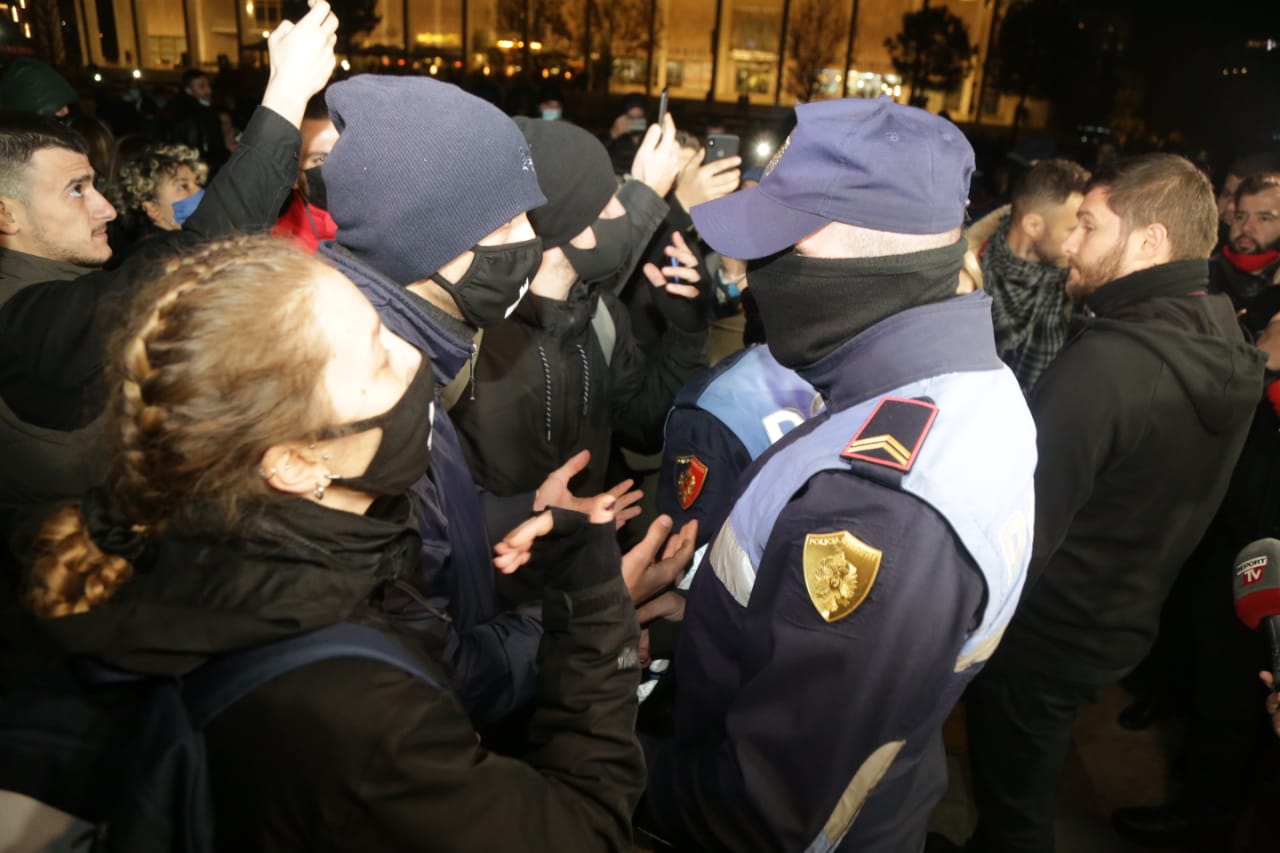 Por gjithsesi, pasi protestuesit janë mbledhur në Bulevardin “Dëshmorët e Kombit”, duke ecur të kapur krah për krahu drejt Drejtorise se Policise janë shënuar edhe incidentet e para.