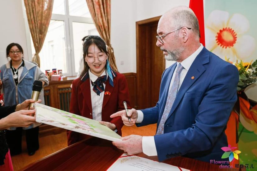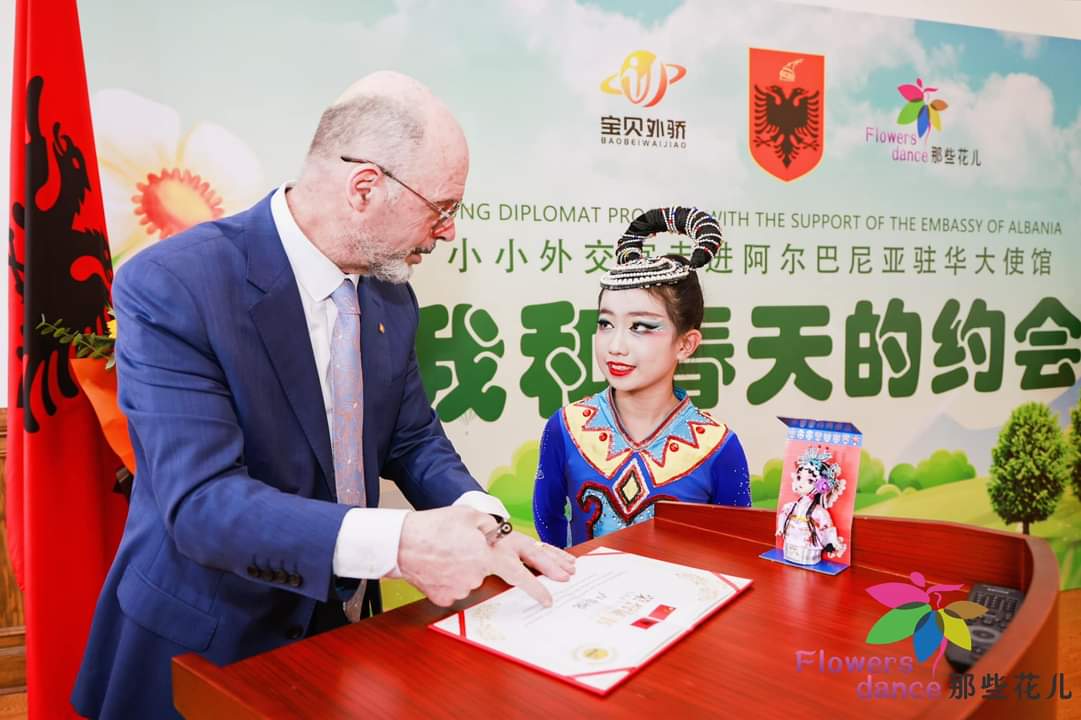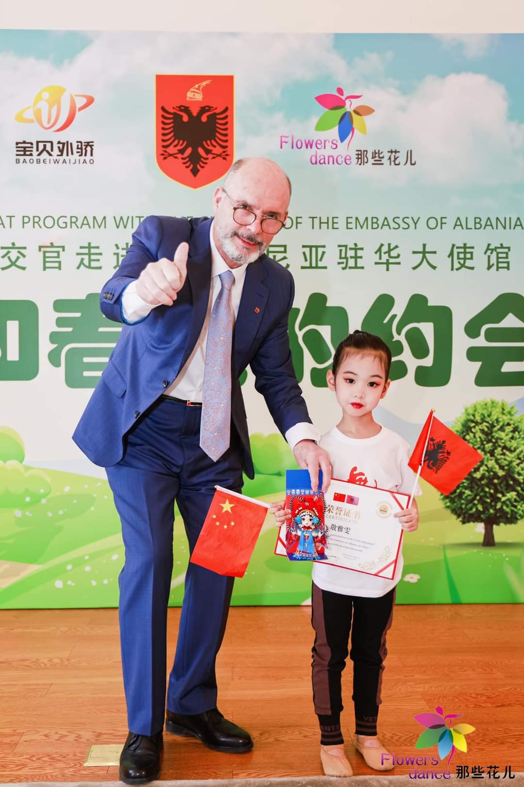 Ambasadori shqiptar në Kinë, Selim Berlortaja së bashku me një grup fëmijësh kinezë ka festuar ditën e verës.