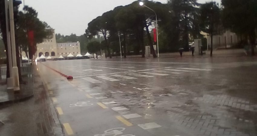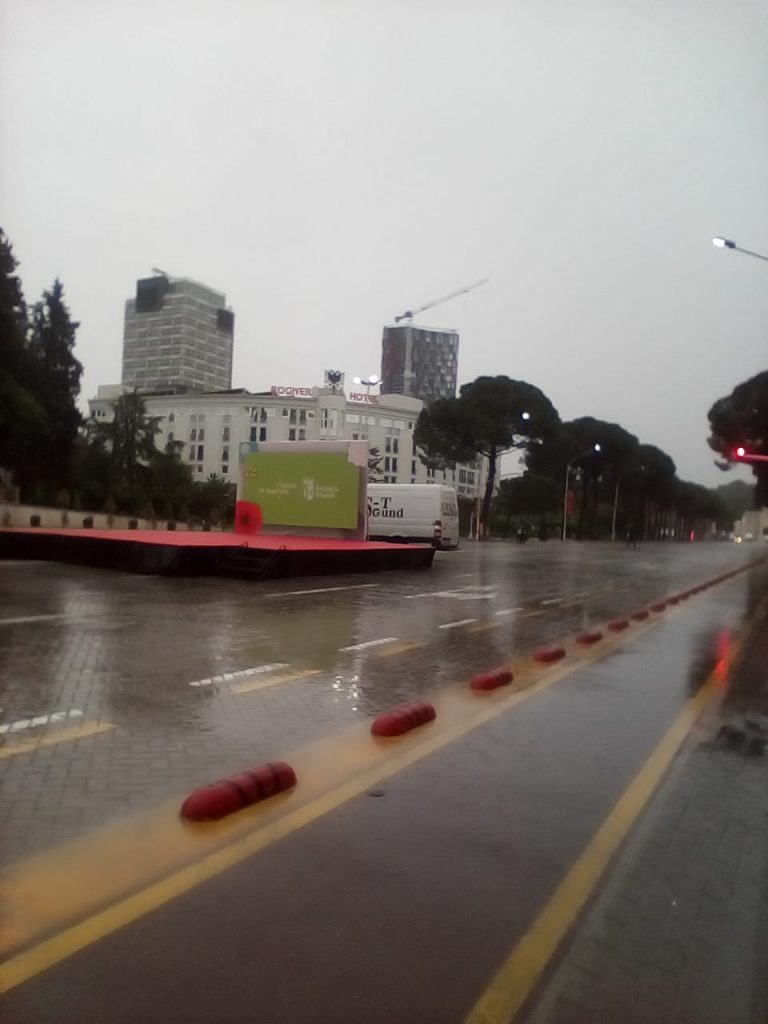 Ashtu siç ishte planifikuar nga Bashkia Tiranë, gjithë bulevardi “Dëshmorët e Kombit” dhe disa prej rrugëve që të çojnë drejt qendrës ishin të bllokuara. Nuk kishte makina, por nuk kishte as njerëz që do të mbushnin sheshet ku janë planifikuar aktivitetet nga bashkia. Atmosfera e përgatitur nga bashkia është gati për evenimentet festive të planifikuara, por këtë mëngjes ishin bosh dhe nën shiun që dukej se kishte pezulluar çdo organizim. Disa policë bashkiak dhe të ata qarkullimit rrugor, që kujdeseshin që makinat të mos hynin në bulevard, ishin të vetmit që dukeshin në peizazhin e boshatisur të aksit qendror të Tiranës.