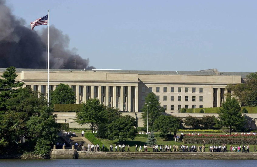 Pentagoni dhe Uashingtoni – Amerika shndërrohet në një plaçkë në mëshirën e thikave xhihadiste. I treti nga katër aeroplanët u rrëzua në orën 9:37 të mëngjesit në anën perëndimore të Pentagonit, shtëpia e Departamentit të Mbrojtjes, në Virxhinia. Sulmi shkakton shembjen e fasadës perëndimore të ndërtesës. As dhjetë minuta më vonë të gjithë aeroportet në Shtetet e Bashkuara janë mbyllur. Së fundi, në orën 10:03 të mëngjesit, një aeroplan i katërt, i linjës “United Airlines Flight 93”, i nisur për në San Françisko, u rrëzua në Pensilvani pas një përplasjeje midis pasagjerëve dhe rrëmbyesve. Objektivi mund të ishte Shtëpia e Bardhë ose, më shumë gjasa, Kapitoli i Uashingtonit, emri i koduar i të cilës për rrëmbyesit ishte, “Shkolla e Drejtësisë”.