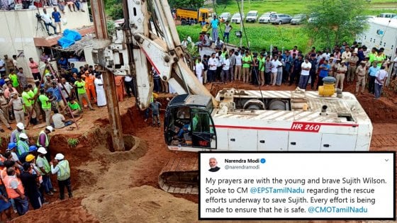 Në rrjetet sociale qarkullojnë video dramatike të ulërimave të fëmijës nga fundi i pusit dhe i nënës që përpiqet ta qetësojë atë. E gjithë India, e angazhuar për të festuar festat e Diwali këto ditë, po ndjek evolucionin e situatës me dhimbje dhe ankth. Shumë aktorë, politikanë dhe vetë kryeministri Narendra Modi i kanë shkruar lutjet e tyre në Twitter. “Lutjet e mia për të voglin e guximshëm Sujith Wilson. Ne po bëjmë çdo përpjekje për të siguruar që ai të jetë i sigurt”, shkruan kryeministri në “Twitter”.