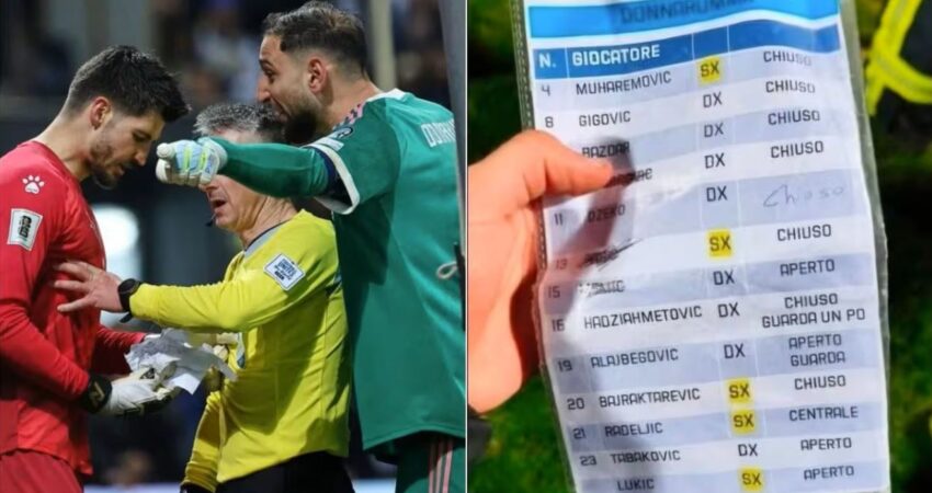 Pasi penalltia e parë e Italisë u humb nga Pio Esposito, duket se Donnarumma grisi shënimet e portierit boshnjak, Vasilj mbi ekzekutuesit e penalltive të “axurrëve”.
