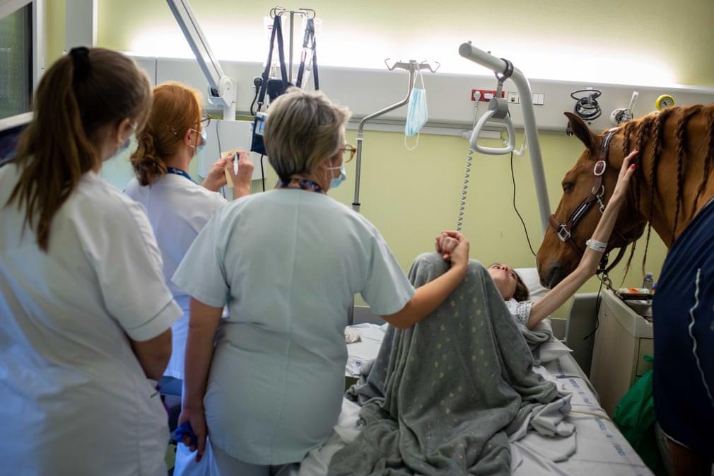 Në qendrën e kujdesit paliativ në Calais, Francë kali me emrin Peyo dhe trajneri i tij Hassen Bouchakour shkojnë për të vizituar pacientët, të cilët mund kalojnë kohë me të.