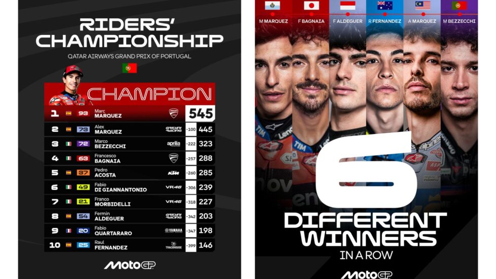 Aldeguer mbajti vendin e 4 përpara Binder, i cili regjistroi për herë të 3 një renditje mes gjashtë më të mirëve këtë sezon, ndërsa Quartararo arriti rezultatin e tij më të mirë në “Çmimin e Madh të Portugalisë” që nga viti 2022.