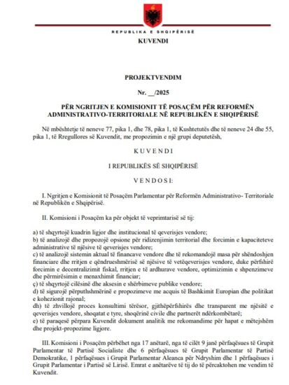 Ndryshe nga Komisioni për Reformën Zgjedhore, në Komisionin për Reformën Administrativo- Territoriale, shumicën do ta ketë mazhoranca.
