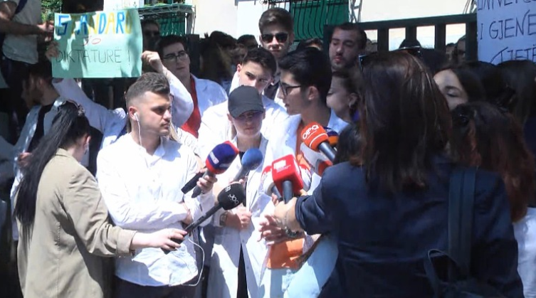Nga Gazeta Si – Studentët e Fakultetit të Mjekësisë dolën në protestë mesditën e sotme para rektoratit të Universitetit të Mjekësisë për të kundërshtuar draftin e Ministrisë së Arsimit për të mos lejuar studentët të largohen nga vendi.