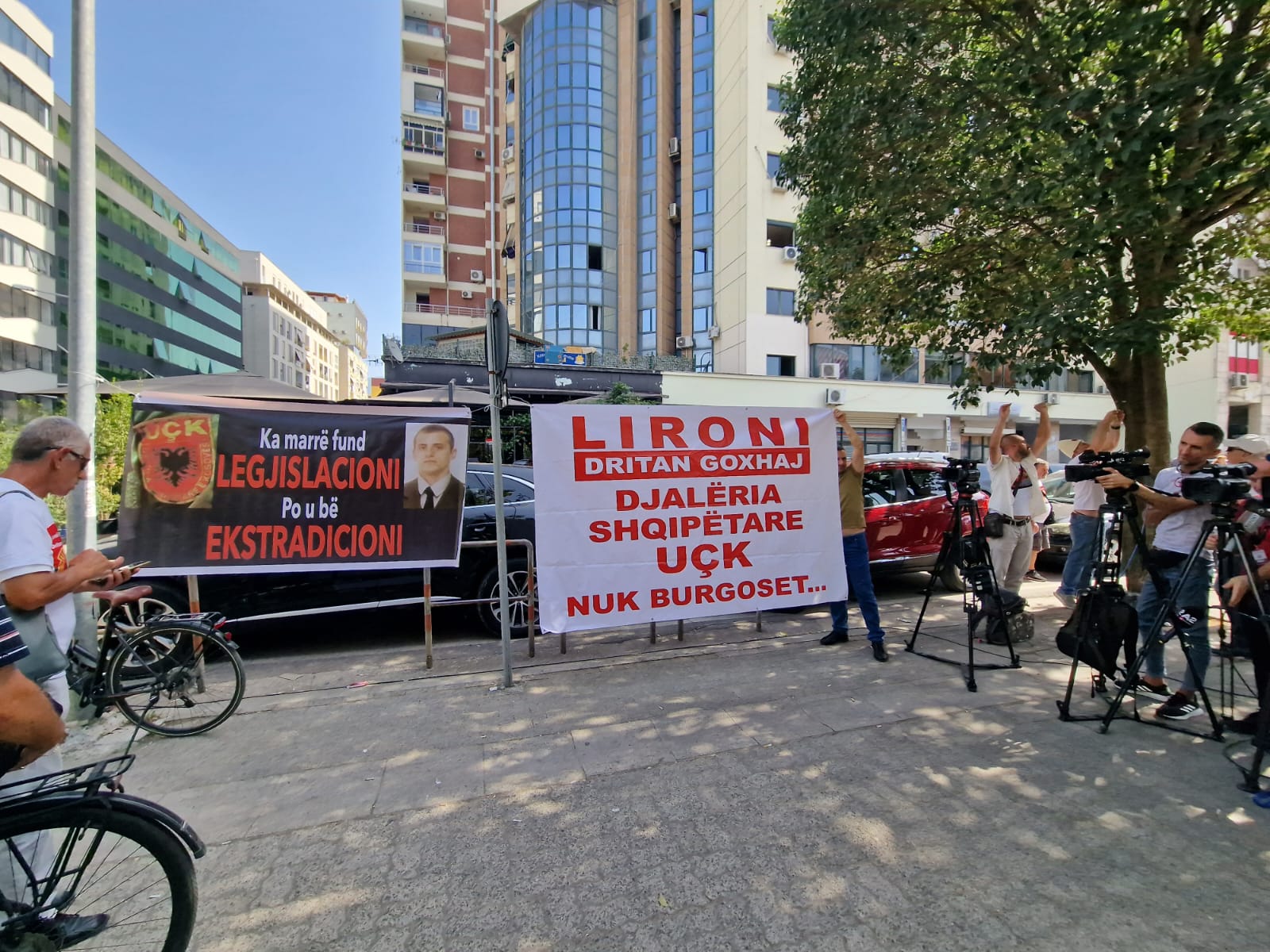 Dhe, ndërkohë që në Gjykatën e Tiranës po mbahej gjyqi, jashtë saj disa dhjetëra qytetarë protestonin kundër ekstradimit të Goxhajt. Me pankarta në duar, plisa në kokë dhe bluza me simbolet kombëtare dhe të UÇK-së, ata e konsideronin të padrejtë arrestimin, ndërsa kërkuan lirimin e Goxhajt.